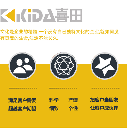 ?喜田(上海)貿(mào)易有限公司是專門負(fù)責(zé)為國內(nèi)外自動(dòng)化工業(yè)知名品牌在中國大陸及香港地區(qū)的推廣及代理.公司坐落于上海閘北高新技術(shù)園區(qū)內(nèi),位于公共設(shè)施,行政機(jī)關(guān)等比較集中,人群流動(dòng)量較大的上海市中心.公司在閘北高新技術(shù)園區(qū)自購辦公樓二層,規(guī)模超過一千平方米.在職員工五十余人,平均文化水品本科以上,其中不乏自動(dòng)化工業(yè)的專業(yè)性技術(shù)人才.是閘北高新技術(shù)的重點(diǎn)企業(yè).