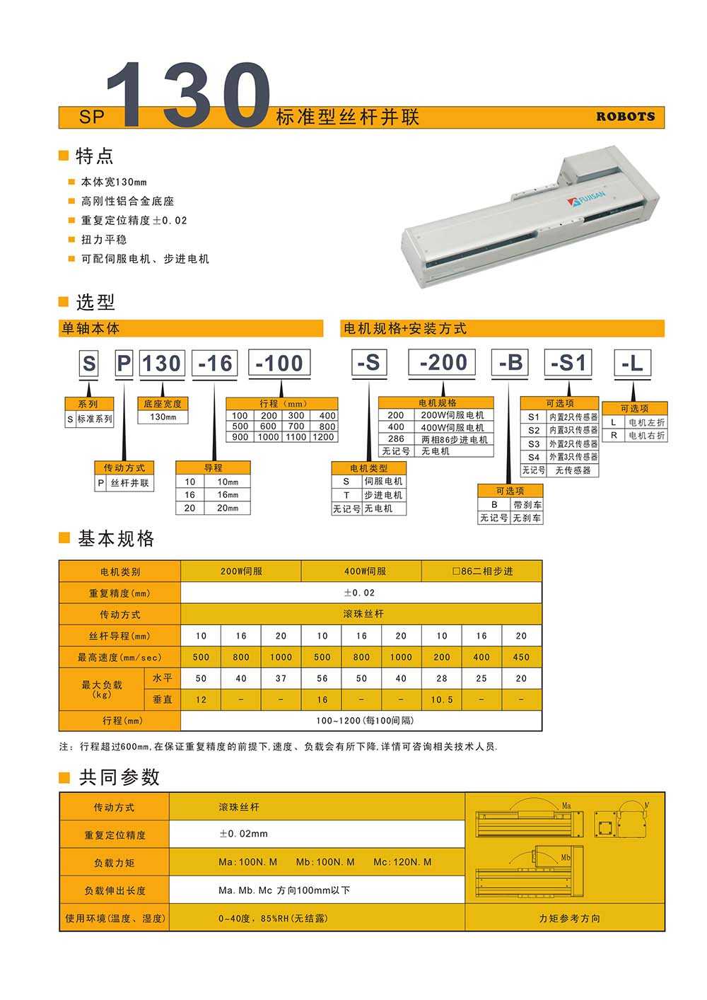 所屬型號:SP130 所屬品牌:福士工業(yè) 所屬分類:單軸模組_標(biāo)準(zhǔn)型 應(yīng)用領(lǐng)域:紡織行業(yè) 電梯行業(yè) 機(jī)床行業(yè)