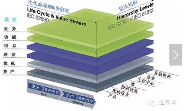 上圖是德國工業4.0的參考架構模型,所謂三大集成,就是如圖,左邊是企業內的網絡化制造體系的縱向集成(生產層,控制層,管理層),右下角的是企業間的橫向集成(各個產業鏈、工廠),再到下方的全生命周期端到工程數字化端的集成(簡單來講就是用戶/模型到設計)